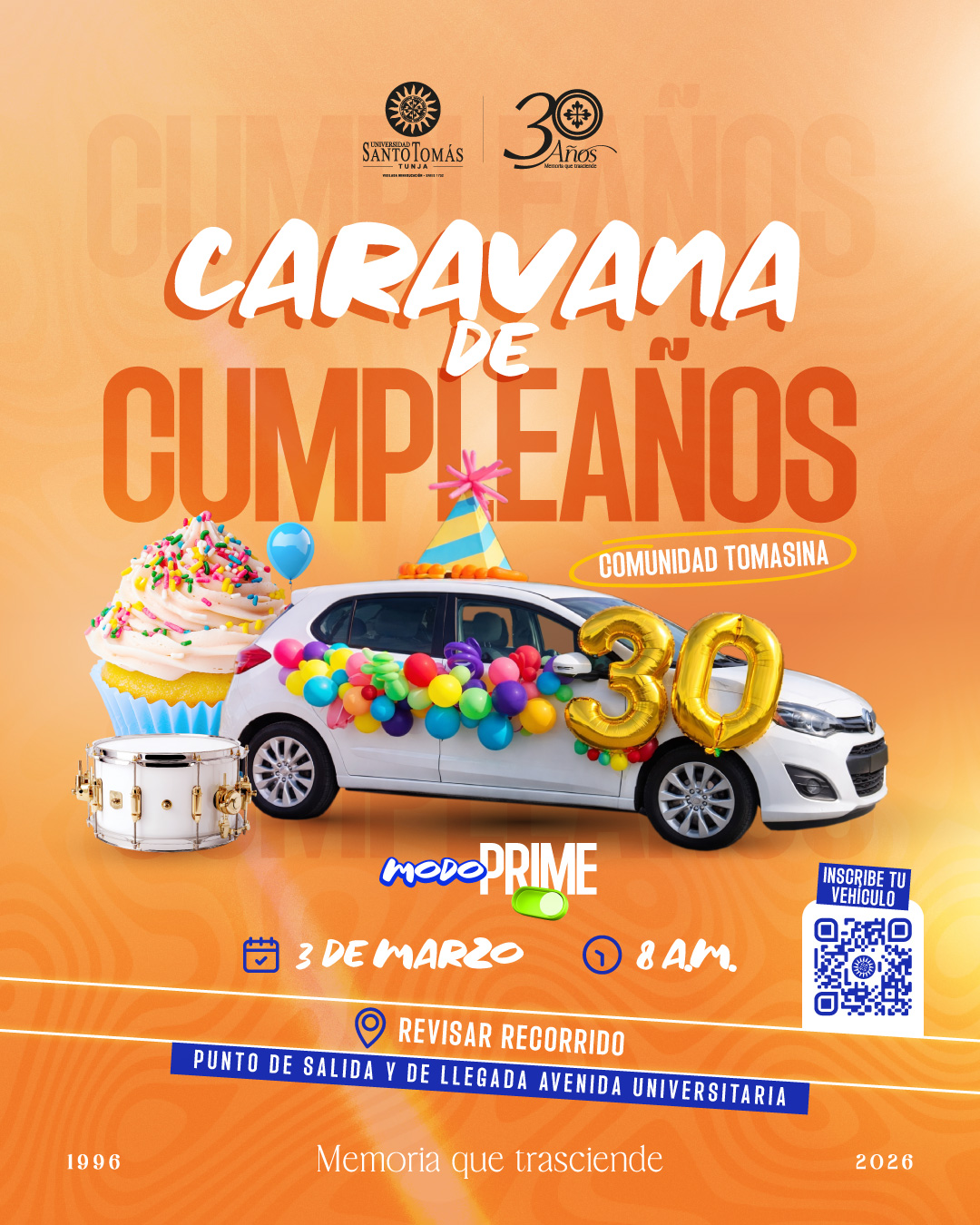 Este evento ha pasado. Ver Todos Los Eventos Caravana de cumpleaños marzo 3 @ 8:00 am - 12:00 pm | Gratis Event Navigation « Eucaristía Santoto League » Inscribir mi vehículo Detalles Fecha: marzo 3 Hora: 8:00 am - 12:00 pm Costo: Gratis Categoría del Evento: Cultural Event Tags:martes Lugar Campus Avenida Universitaria Tunja, Boyacá 15001 Colombia Phone: 744 04 04 Organizador Universidad Santo Tomás – Seccional Tunja + Google Calendar+ iCal Export Anterior Eucaristía Siguiente Santoto League